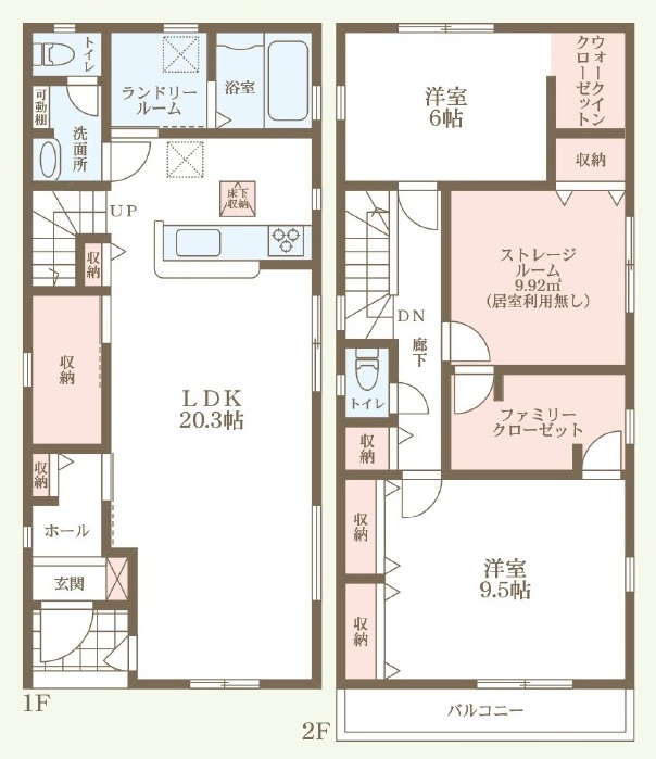 構造 木造軸組構法(在来工法) 階建て 2階建て 間取り詳細 洋3・LDK1